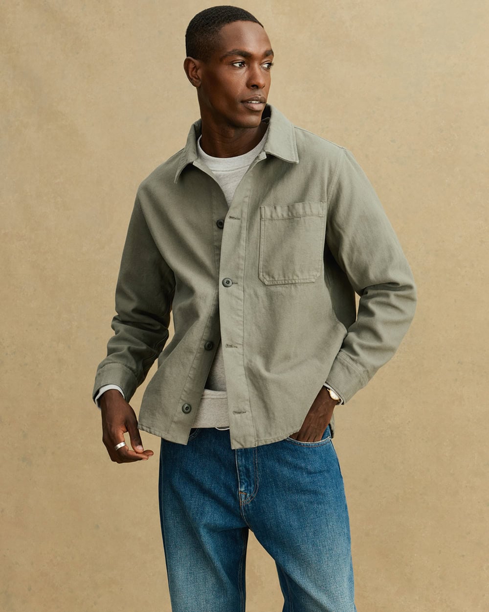 ‘Overshirt’ is a pretty broad term, and there are numerous ways to interpret it. That said, it’s impossible to go wrong with a classic three-pocket design in a goes-with-anything colourway, such as khaki or olive.